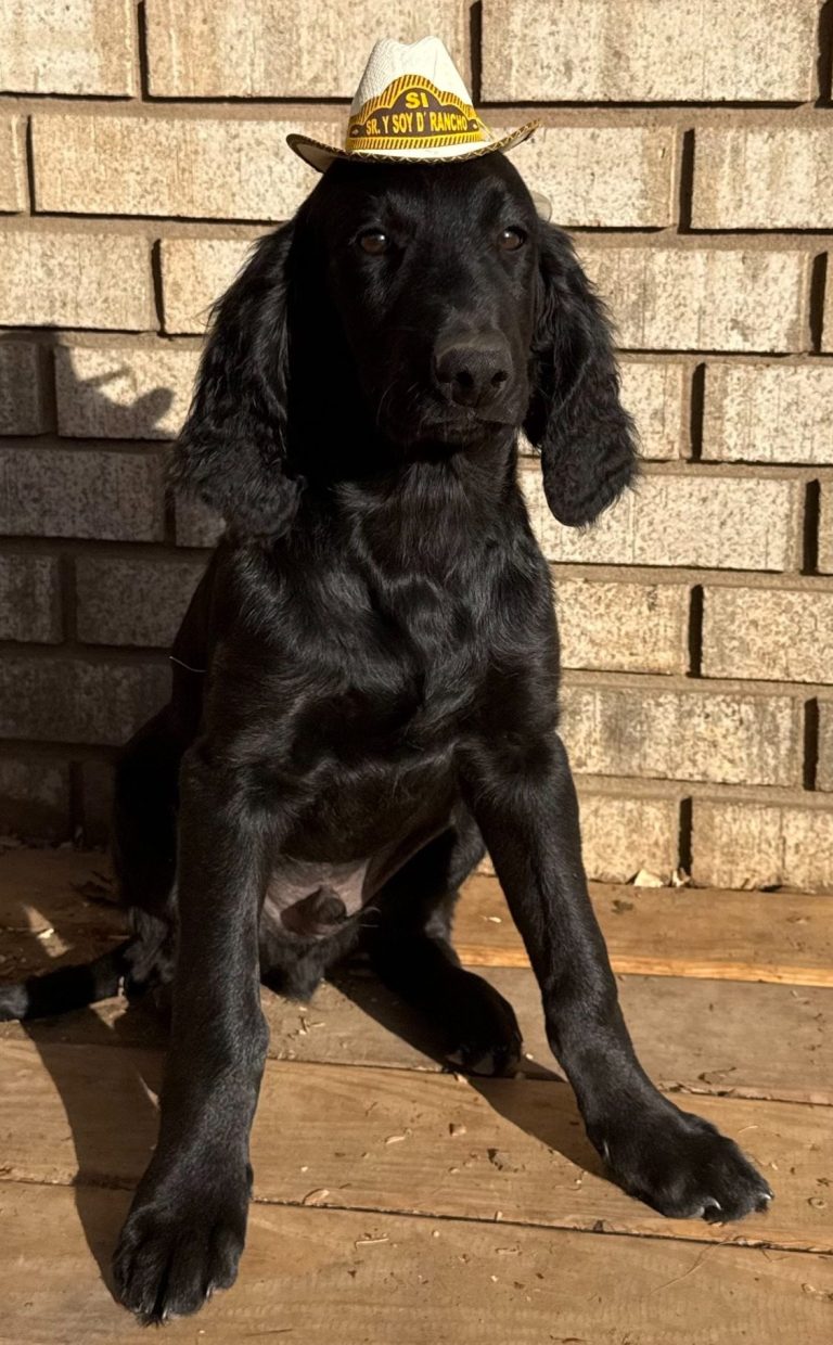 Boy: soft flat coat, super adorable, will follow you around, loves to play