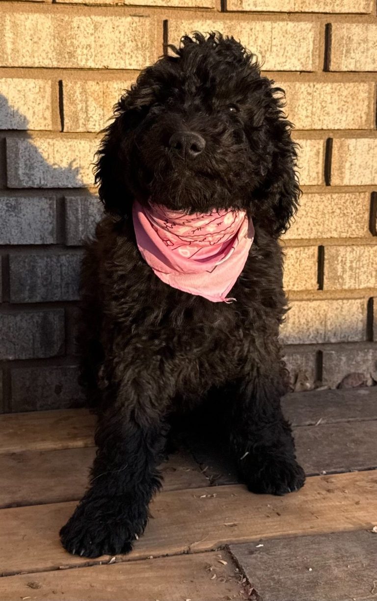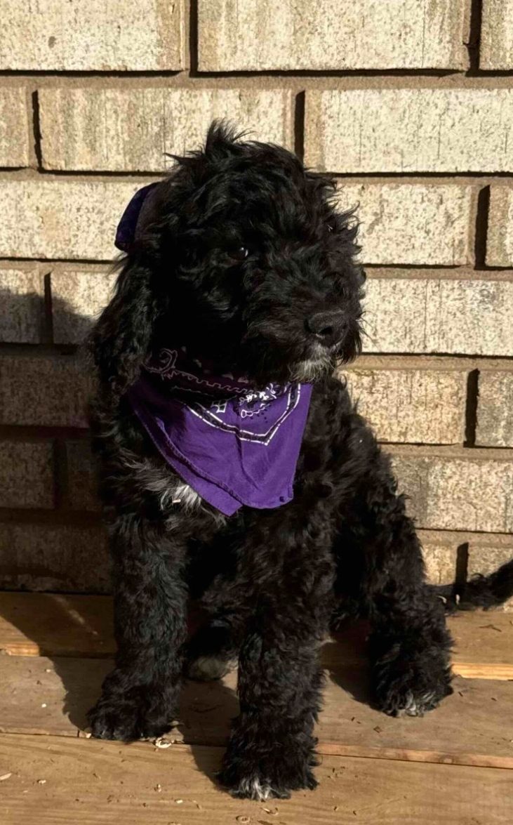 All of our dogs are standard size and will have a full-grown weight of 40-70 lbs. Their coats vary between a curly, shaggy, and flat coat. The curly and shaggy coats are more fluffy, while the flat coats are more sleek. You will notice that each puppy has a nickname, and a small bio to describe them. If you fall in love with one of our babies and want to meet them in person, please contact us at turpinranchpuppies@gmail.com or message us through one of our social media accounts.