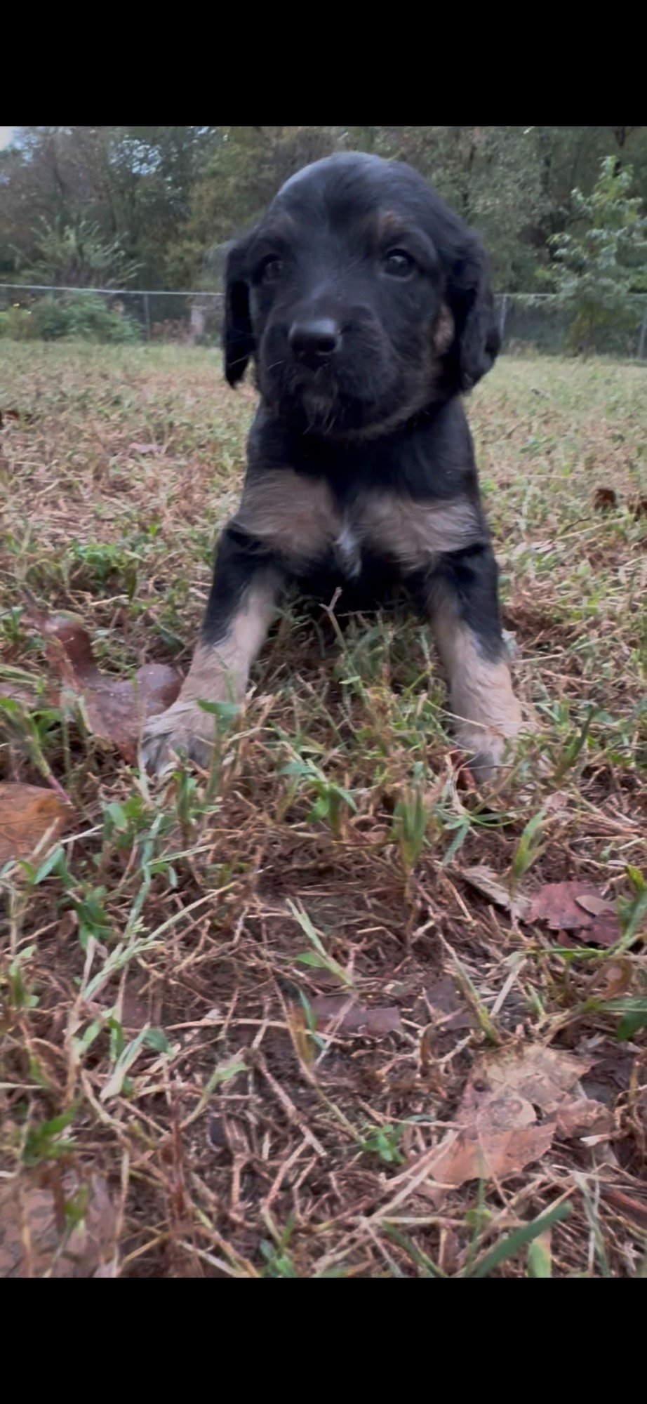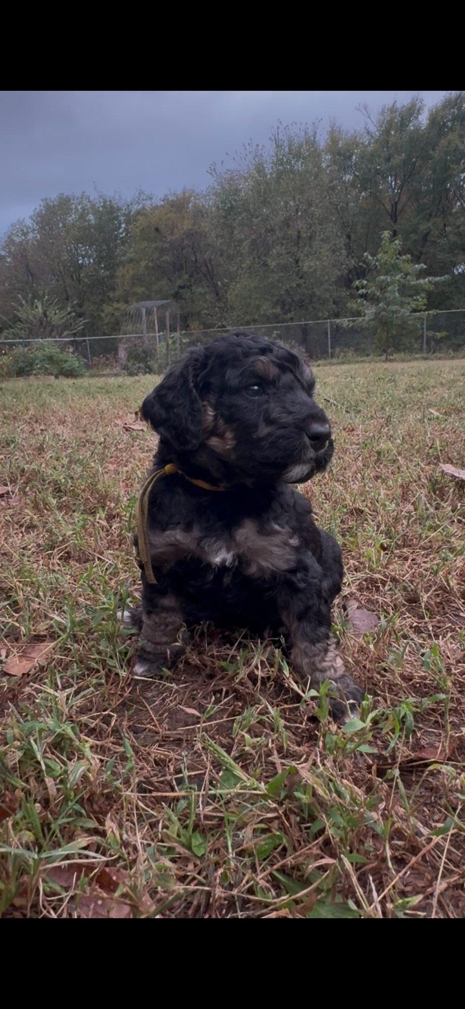 Girl: soft curly coat, the runt of the litter, very sweet, energetic, and full of love