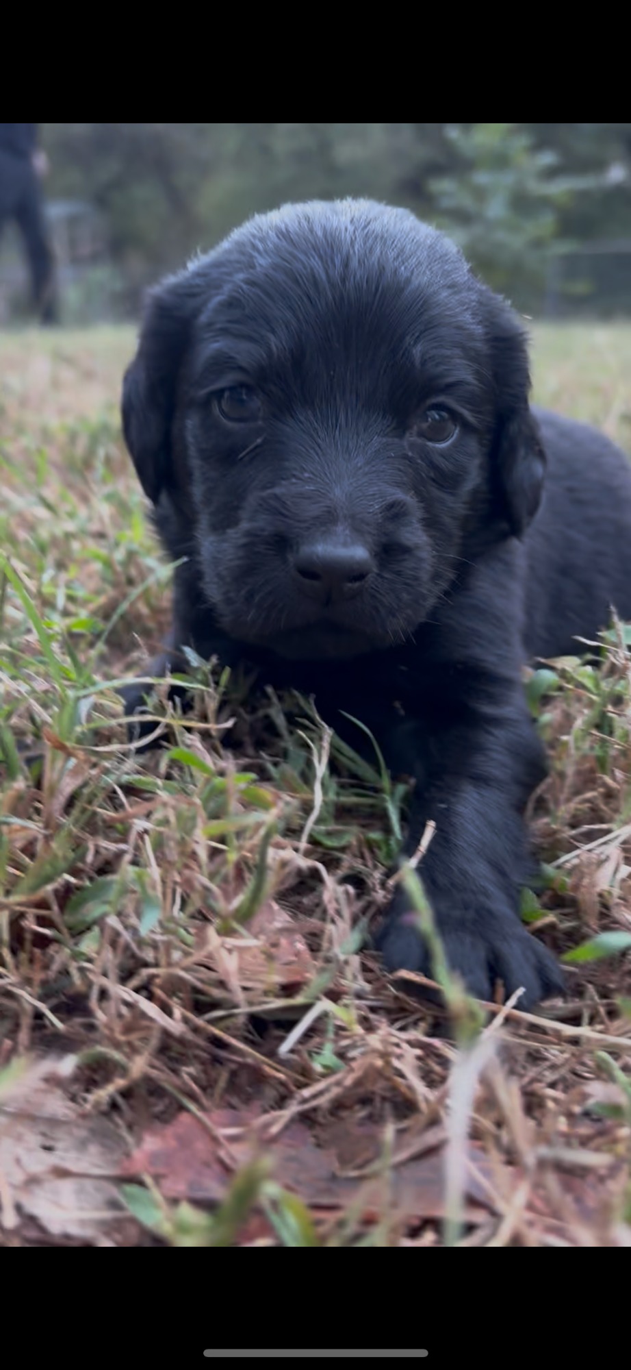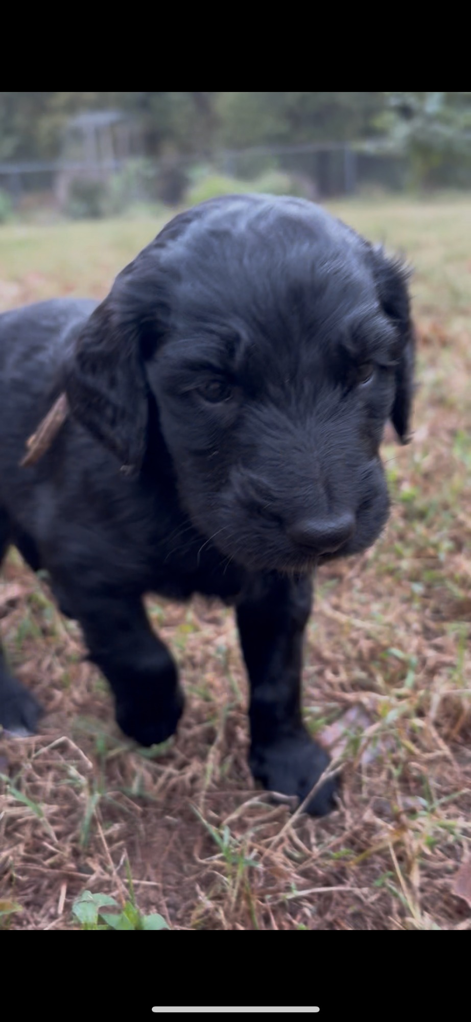 Boy: soft flat coat, super adorable, will follow you around, loves to play